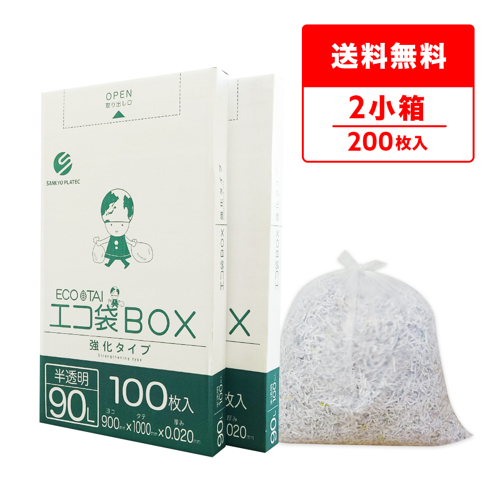 ごみ袋 箱タイプ 90リットル 薄手 半透明 90x100cm 0.020mm厚 100枚x2小箱 BX-930-2kobako/ ポリ袋 ゴミ袋 平袋 BOX 90l ナチュラル 業務用