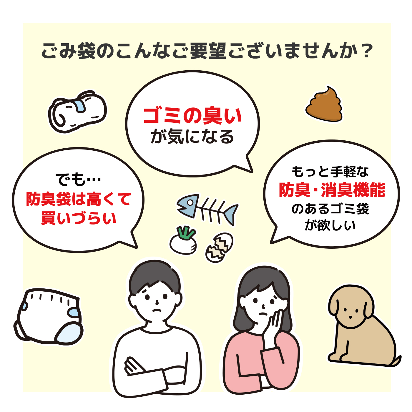 生ごみやペットの排泄物、使用済みオムツなどの臭い漏れの防止に役立ちます。