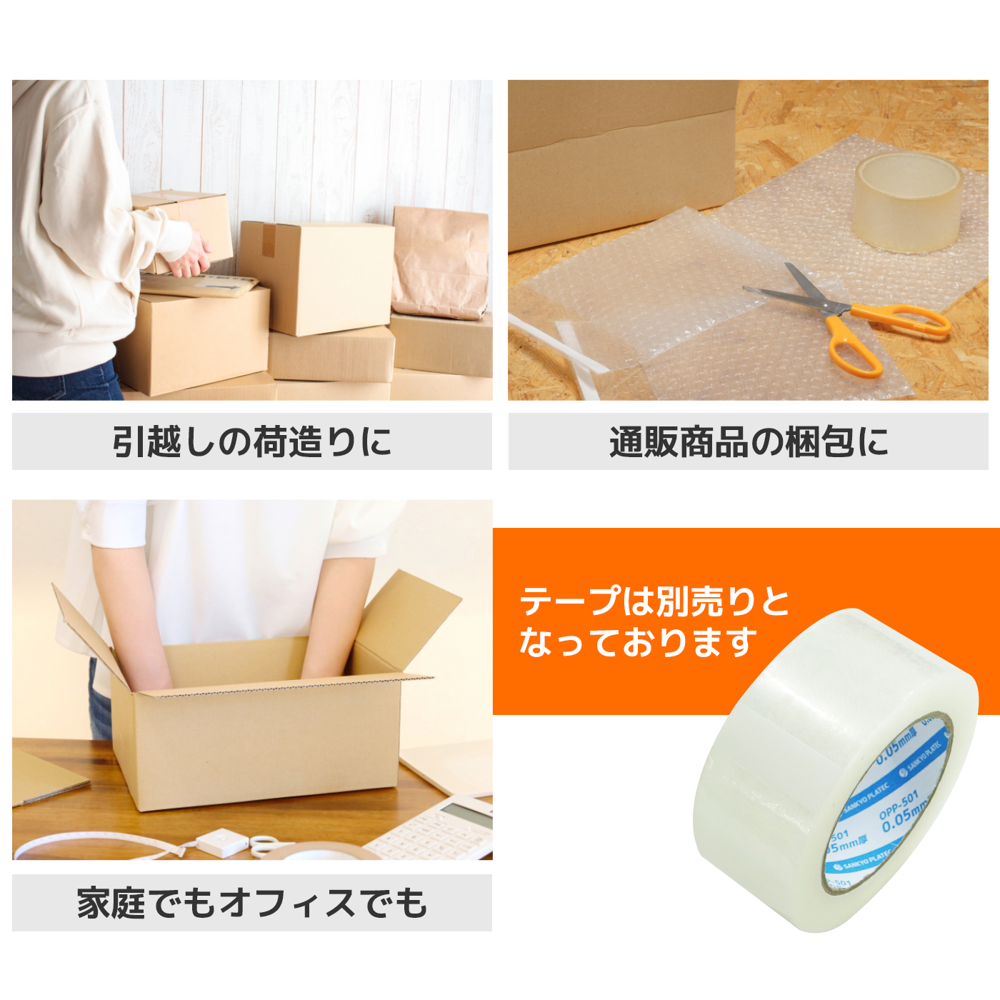 製造物や通販商品の梱包作業や引越し時の荷造り等に便利です。