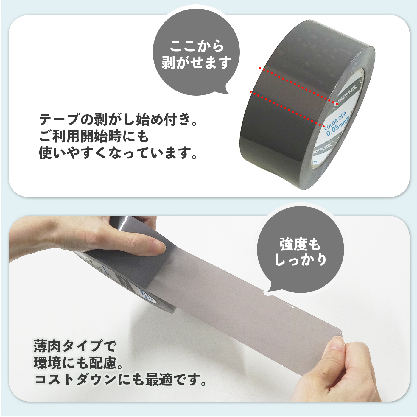段ボール等にしっかり貼れる!商品の梱包に便利なカラーOPPテープです。