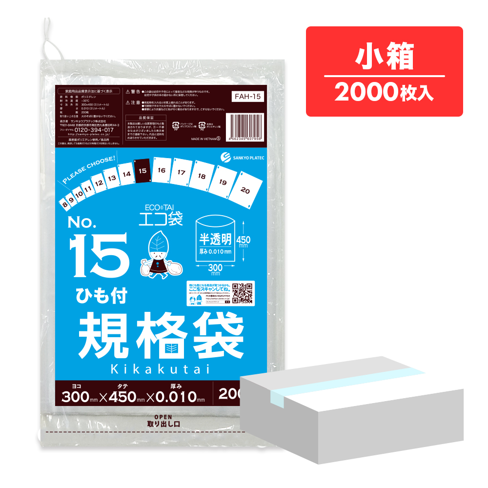 ひも付 規格袋 15号 薄手 半透明 30x45cm 0.010mm厚 200枚x10冊 FAH-15kobako 食品検査適合 食品対応 袋 保存袋 食品用 検食 仕分け 梱包 No.15 業務用