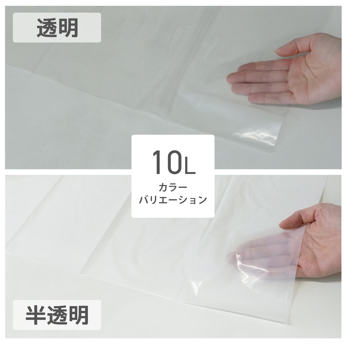低密度ポリエチレンのツルツル素材の10L透明ポリ袋です。