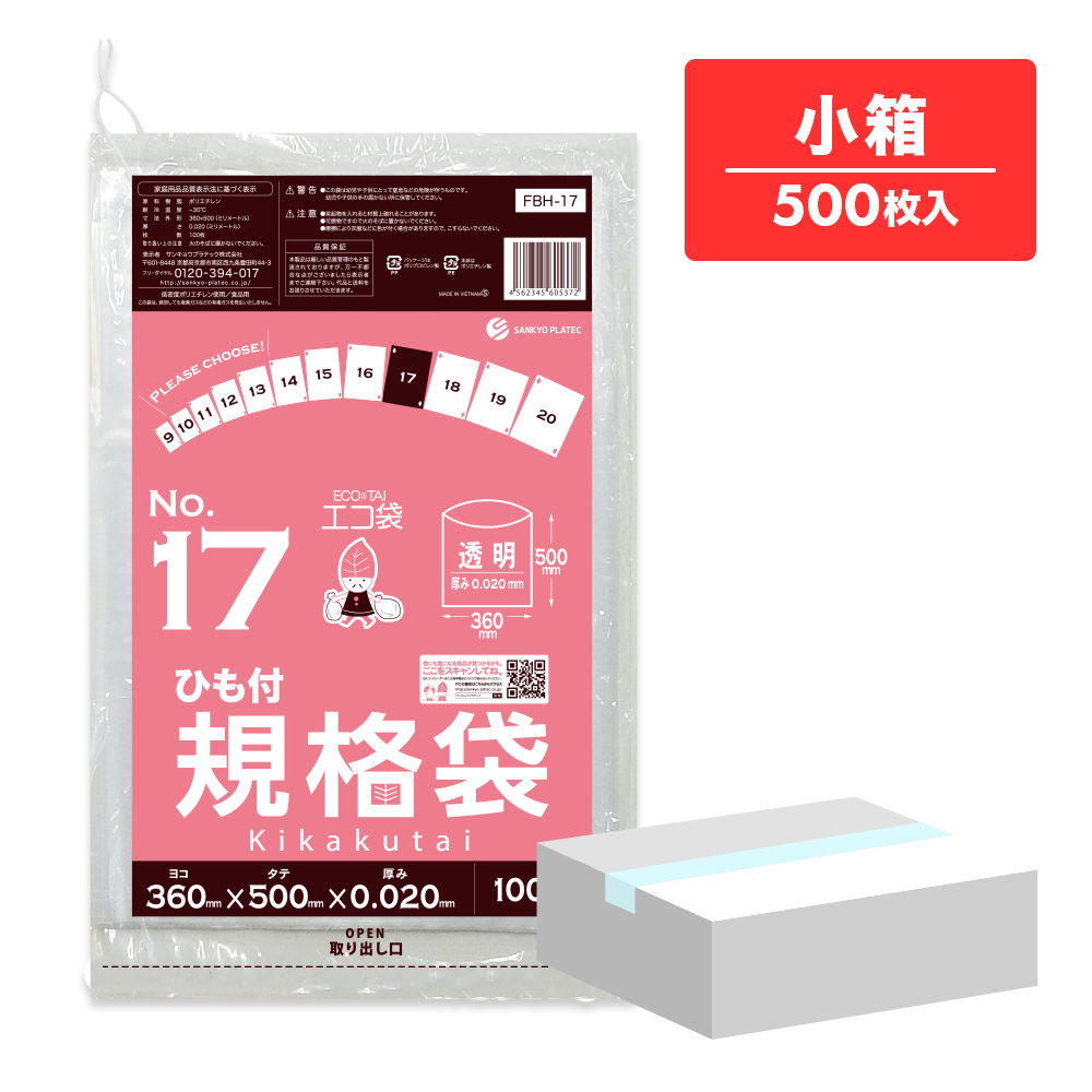 ひも付 規格袋 17号 透明 36x50cm 0.020mm厚 100枚x5冊 FBH-17kobako 食品検査適合 食品対応 袋 保存袋 食品用 検食 仕分け 梱包 No.17 クリア 業務用