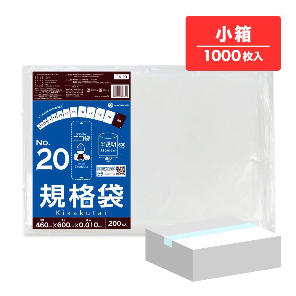 規格袋 20号 薄手 半透明 46x60cm 0.010mm厚 200枚x5冊 FA-20kobako 食品検査適合 食品対応 袋 保存袋 食品用 検食 仕分け 梱包 No.20 業務用