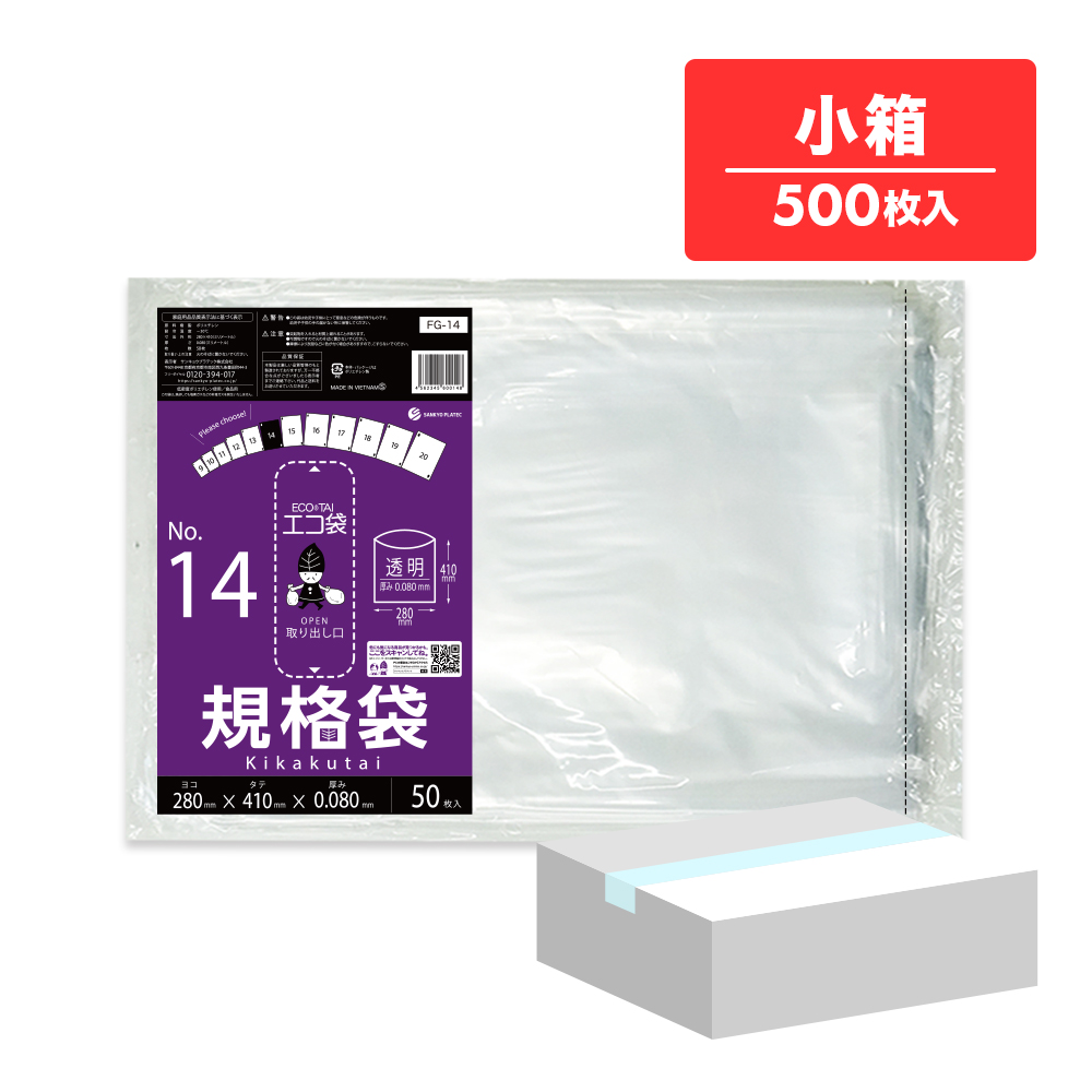 規格袋 14号 極厚 透明 28x41cm 0.080mm厚 50枚x10冊 FG-14kobako 食品検査適合 食品対応 袋 保存袋 食品用 検食 厨房 保育園 仕分け 梱包 保管 工場 No.14 クリア 業務用