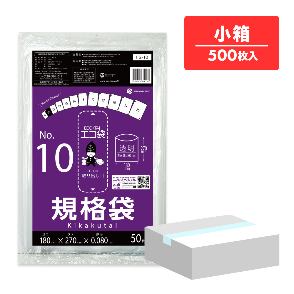 規格袋 10号 極厚 透明 18x27cm 0.080mm厚 50枚x10冊 FG-10kobako 食品検査適合 食品対応 袋 保存袋 食品用 検食 厨房 保育園 仕分け 梱包 保管 工場 No.10 クリア 業務用