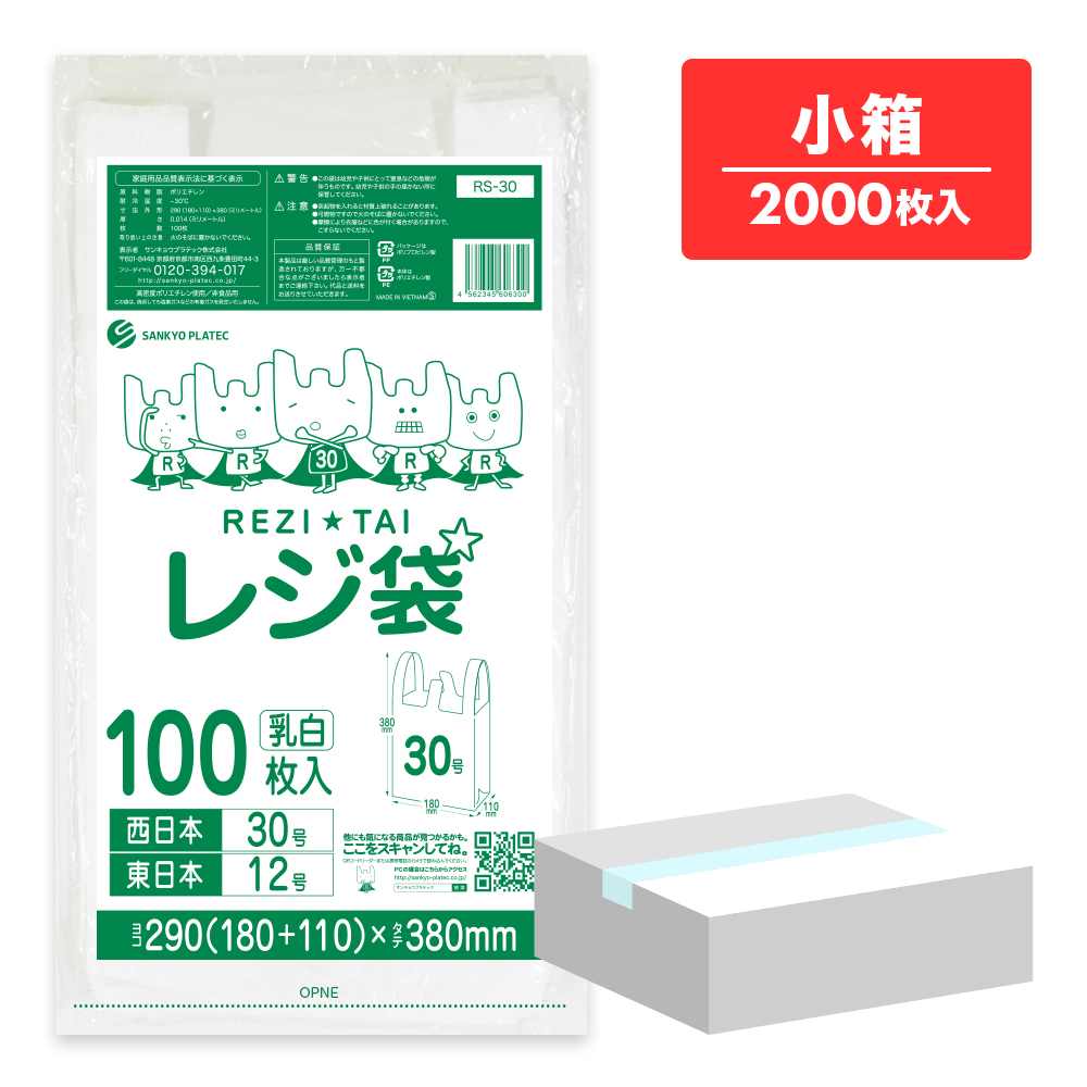 レジ袋 厚手 西日本 30号 (東日本12号) ブロック有 乳白 0.014mm厚 100枚x20冊 RS-30kobako /手さげ袋 買い物袋 袋 S ホワイト 業務用