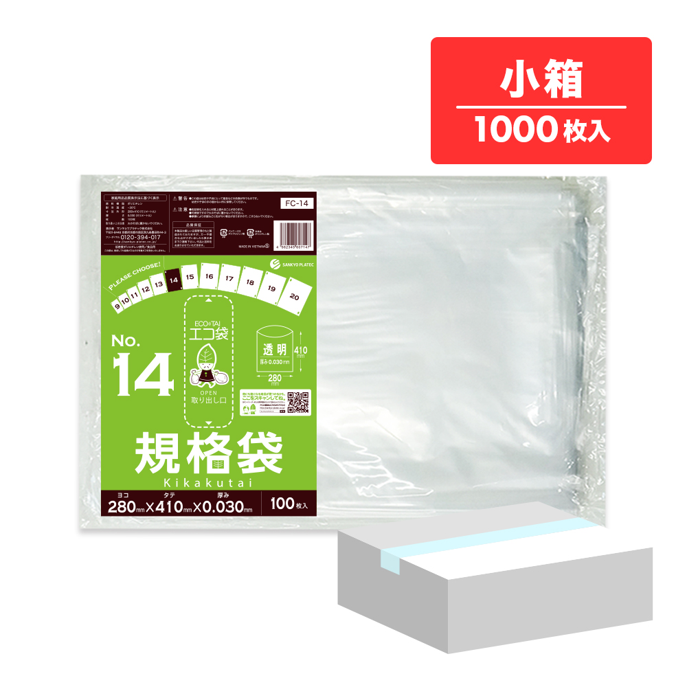 規格袋 14号 透明 28x41cm 0.030mm厚 100枚x10冊 FC-14kobako 食品検査適合 食品対応 袋 保存袋 食品用 検食 仕分け 梱包 No.14 クリア 業務用