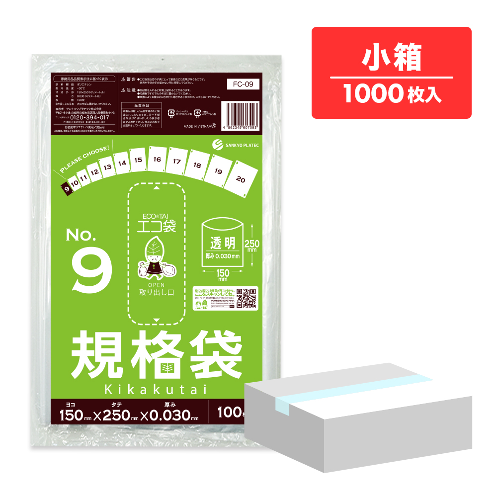 規格袋 9号 透明 15x25cm 0.030mm厚 100枚x10冊 FC-09kobako 食品検査適合 食品対応 袋 保存袋 食品用 検食 仕分け 梱包 No.9 クリア 業務用