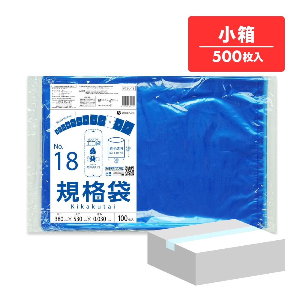 規格袋 18号 青半透明 38x53cm 0.030mm厚 100枚x5冊 FCBL-18kobako 食品検査適合 食品対応 袋 保存袋 食品用 検食 仕分け 梱包 No.18 ブルー 業務用