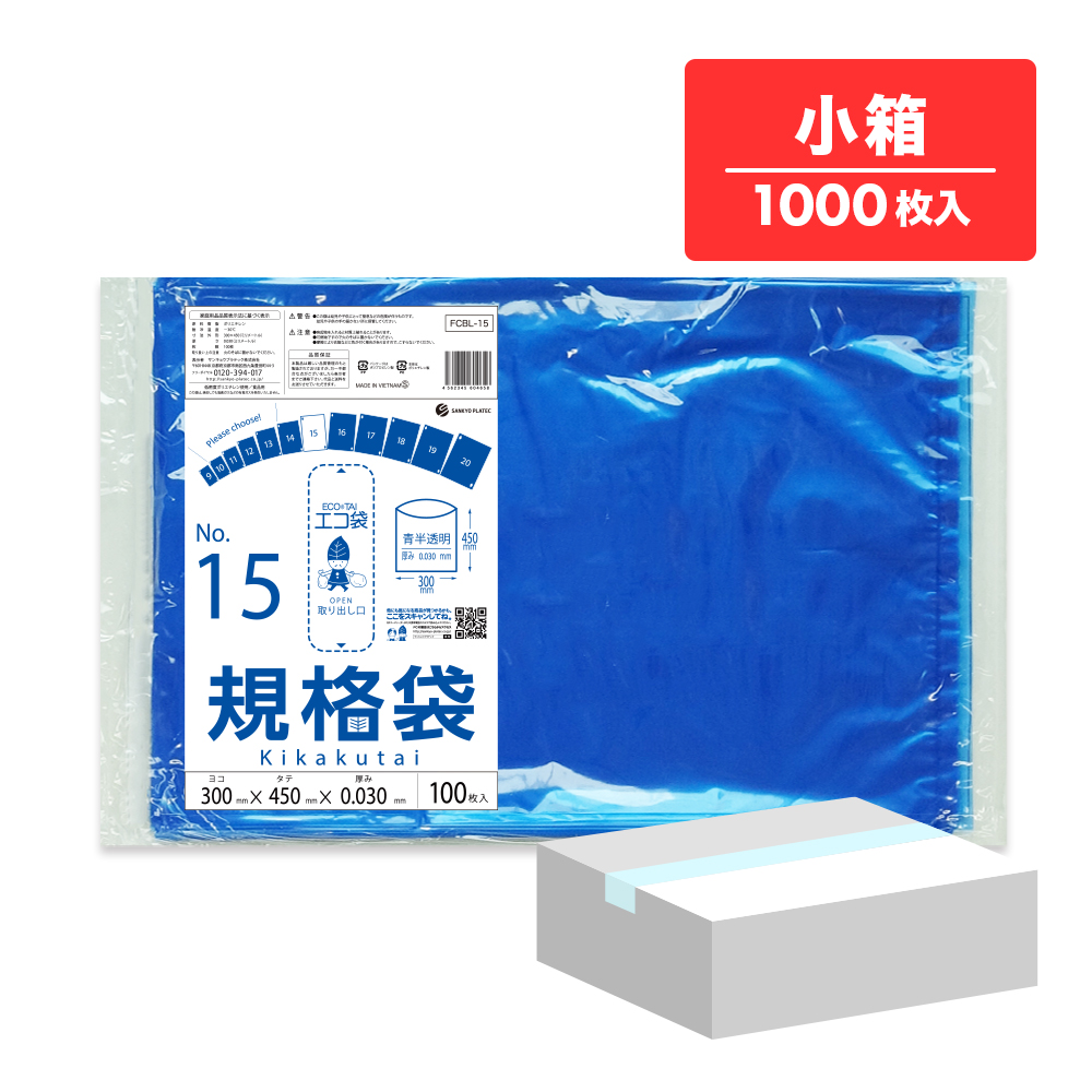 規格袋 15号 青半透明 30x45cm 0.030mm厚 100枚x10冊 FCBL-15kobako 食品検査適合 食品対応 袋 保存袋 食品用 検食 仕分け 梱包 No.15 ブルー 業務用