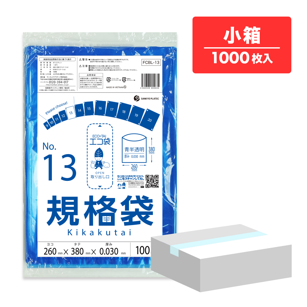 規格袋 13号 青半透明 26x38cm 0.030mm厚 100枚x10冊 FCBL-13kobako 食品検査適合 食品対応 袋 保存袋 食品用 検食 仕分け 梱包 No.13 ブルー 業務用