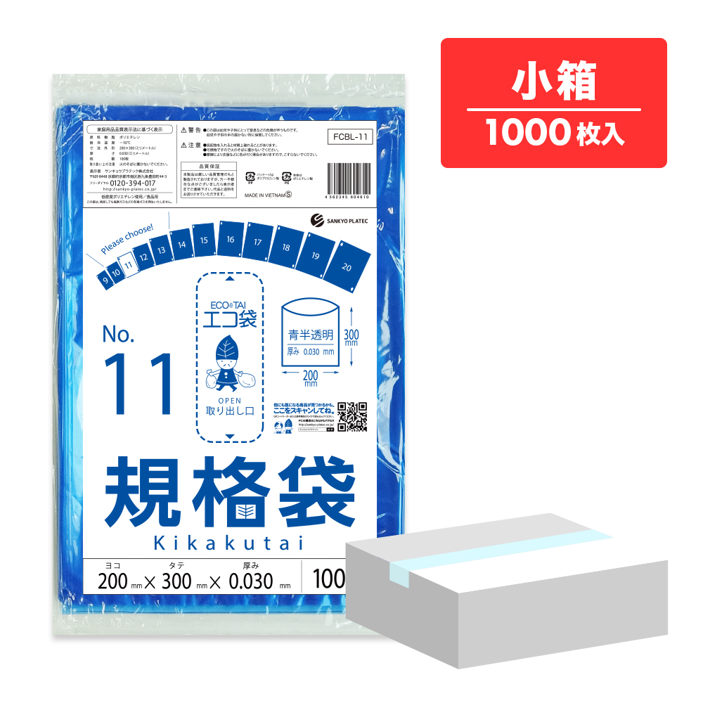 規格袋 11号 青半透明 20x30cm 0.030mm厚 100枚x10冊 FCBL-11kobako 食品検査適合 食品対応 袋 保存袋 食品用 検食 仕分け 梱包 No.11 ブルー 業務用