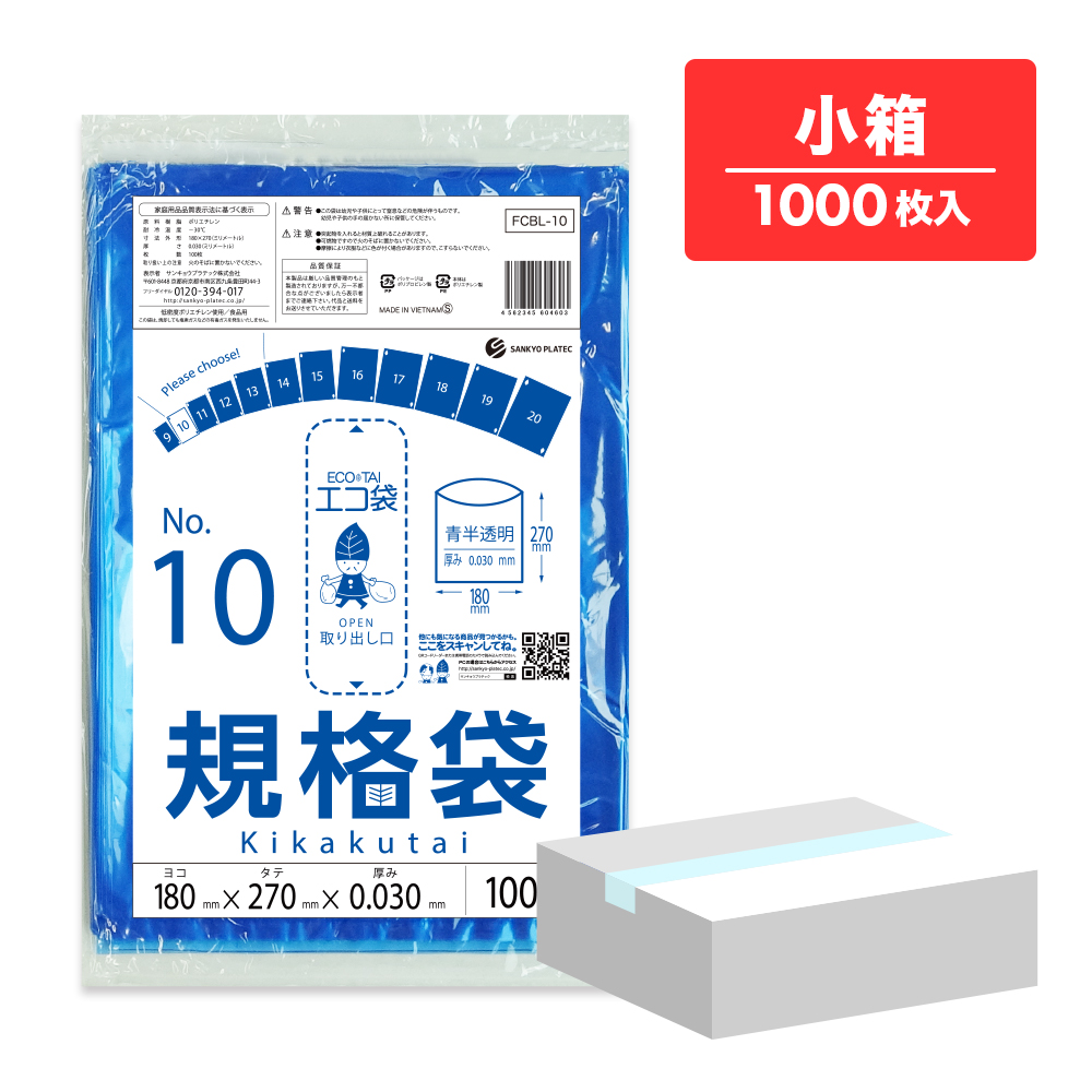 規格袋 10号 青半透明 18x27cm 0.030mm厚 100枚x10冊 FCBL-10kobako 食品検査適合 食品対応 袋 保存袋 食品用 検食 仕分け 梱包 No.10 ブルー 業務用