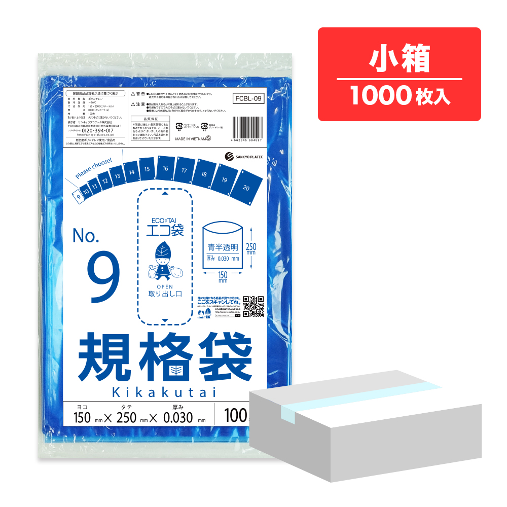 規格袋 9号 青半透明 15x25cm 0.030mm厚 100枚x10冊 FCBL-09kobako 食品検査適合 食品対応 袋 保存袋 食品用 検食 仕分け 梱包 No.9 ブルー 業務