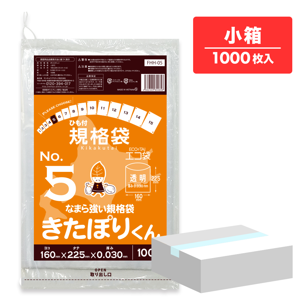 FHH-05kobako きたぽりくん 北海道規格 ひも付 規格袋 5号 0.030mm厚 透明 100枚×10冊