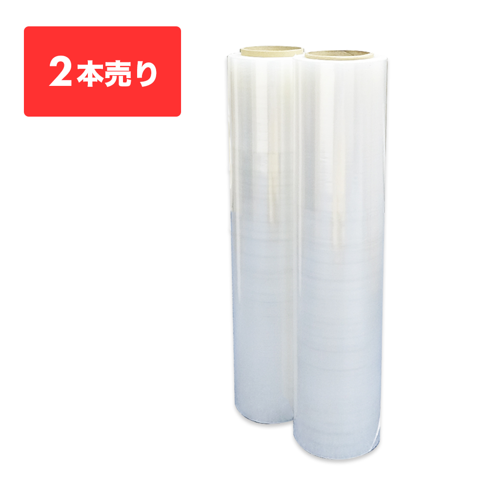 ストレッチフィルム 厚手 500mm幅x300m 0.020mm厚 透明 2本 STR-500-20-b2/梱包用フィルム 梱包ラップ 大型ラップ 手巻きタイプ クリア 業務用