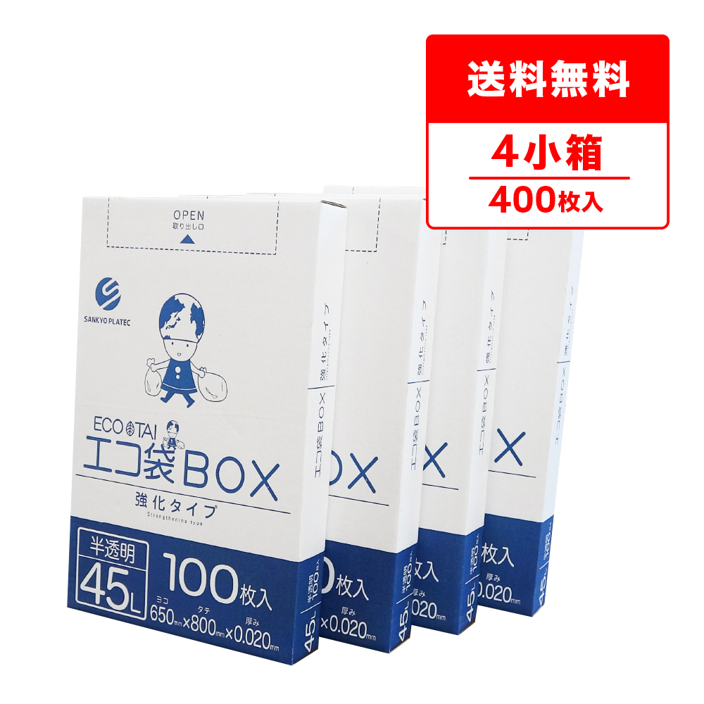 ごみ袋 箱タイプ 45リットル 薄手 半透明 65x80cm 0.015mm厚 100枚x4小箱 BX-530-4kobako / ポリ袋 ゴミ袋 平袋 BOX 45l ナチュラル 業務用