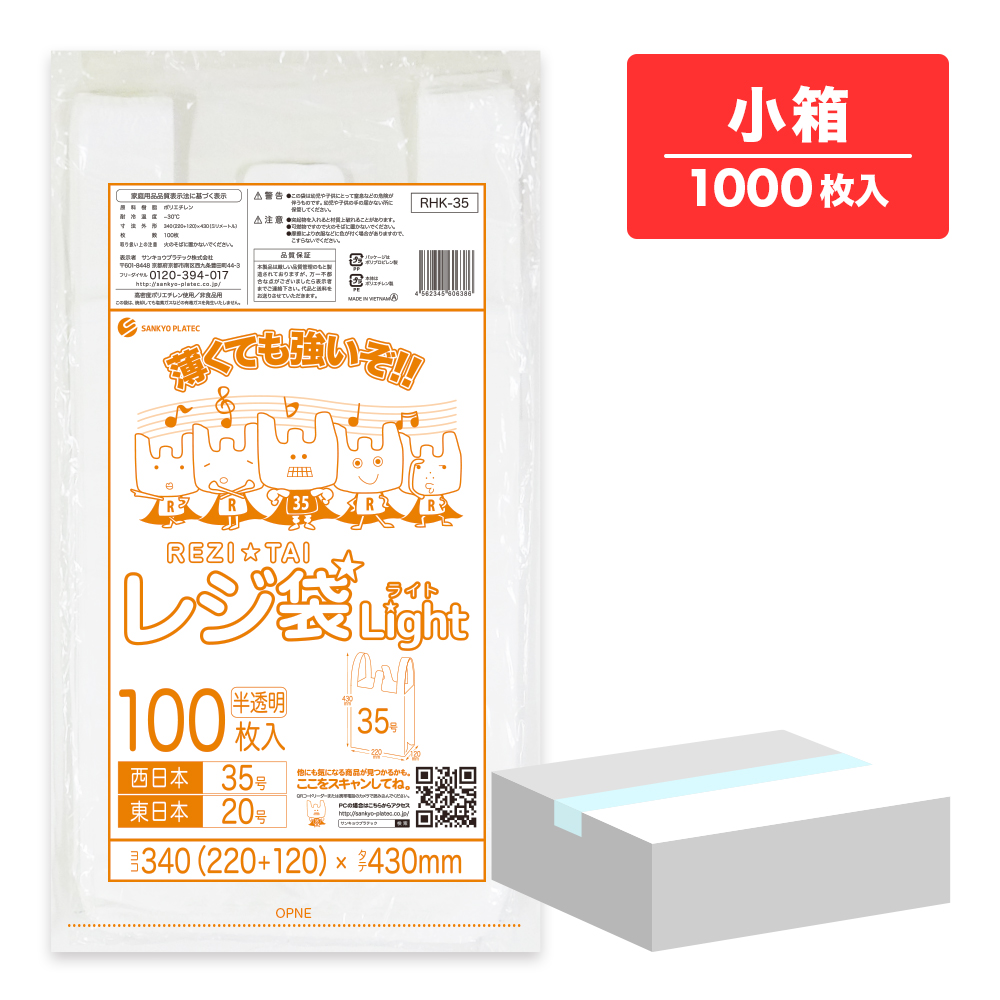 レジ袋 薄手 西日本 35号 (東日本20号) ブロック有 半透明 0.011mm厚 100枚x10冊 RHK-35kobako /手さげ袋 買い物袋 袋 M 業務用