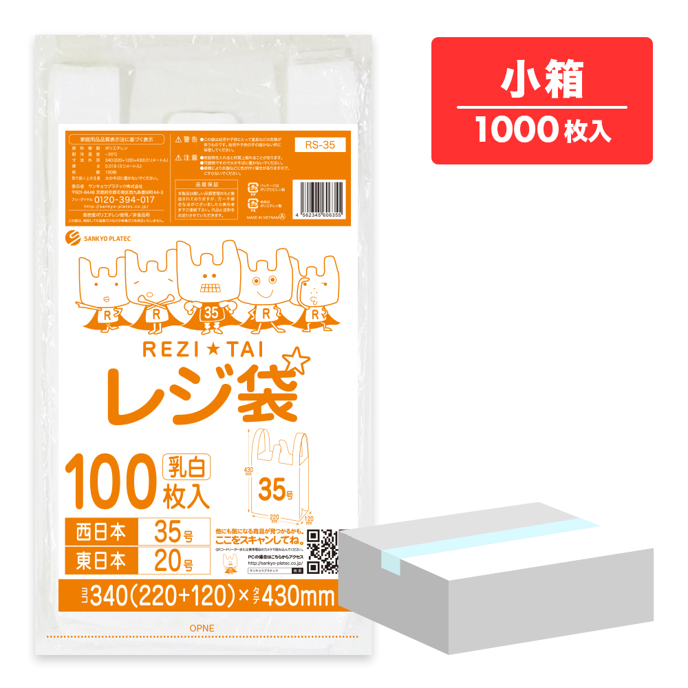 レジ袋 厚手 西日本 35号 (東日本20号) ブロック有 乳白 0.016mm厚 100枚x10冊 RS-35kobako/ 手さげ袋 買い物袋 袋 業務用 M ホワイト
