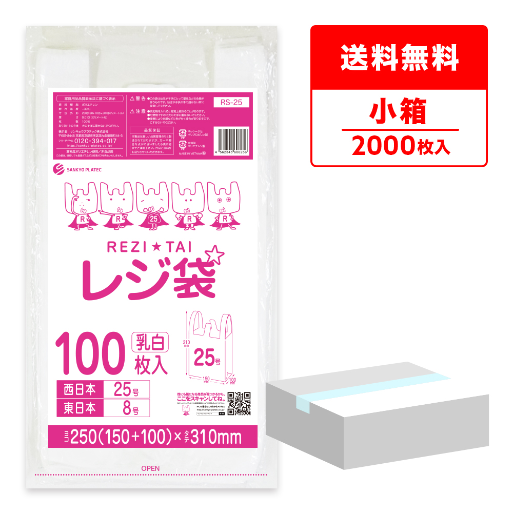 レジ袋 厚手 西日本 25号 (東日本8号) ブロック有 乳白 0.013mm厚 100枚x20冊 RS-25kobako /手さげ袋 買い物袋 袋 SS ホワイト 業務用 送料無料