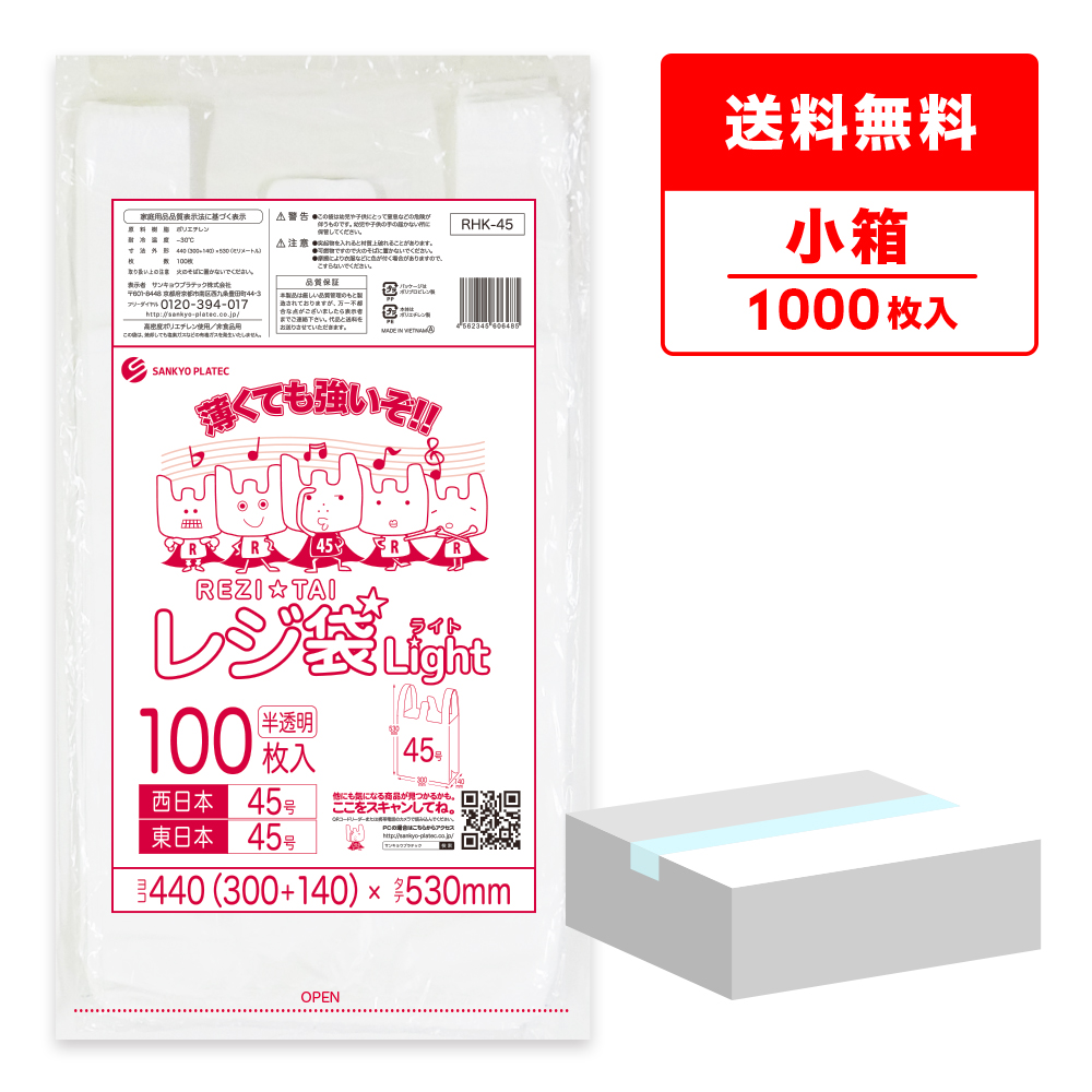 レジ袋 薄手 西日本 45号 (東日本45号) ブロック有 半透明 0.016mm厚 100枚x10冊 RHK-45kobako /手さげ袋 買い物袋 袋 LL 業務用 送料無料