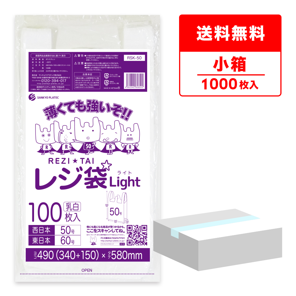 レジ袋 薄手 西日本 50号 (東日本60号) ブロック有 乳白 0.018mm厚 100枚x10冊 RSK-50kobako /手さげ袋 買い物袋 袋 3L ホワイト 業務用 送料無料